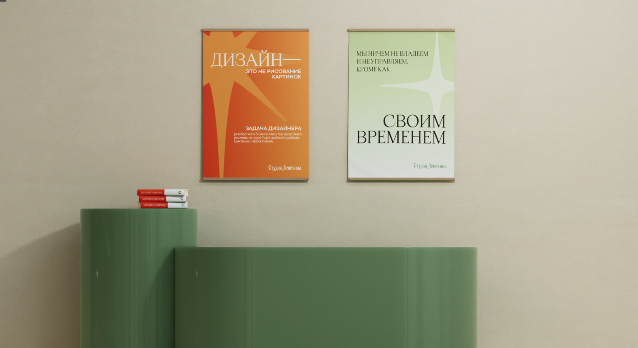 The color palette is composed of contrasting colors to reflect the dualism of the studio's calm professionalism and rebellious boldness. Together, orange and green colors are reminiscent of autumn, the time when nature is quiet but bright.